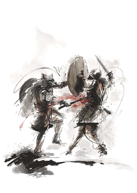 Berserk with heavier armor, blade silhouettes and the darker tragic fantasy side pushed forward.