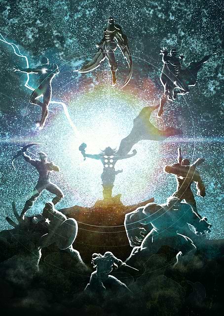 Avengers with larger ensemble moments, brighter team scale and cleaner blockbuster comic rhythm.