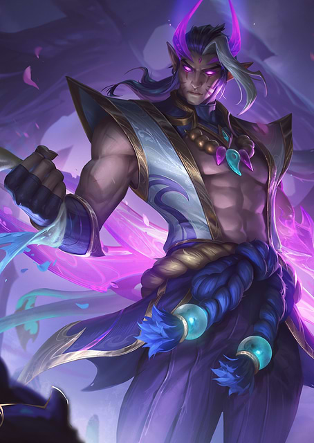 League of Legends in a poster-first treatment with champion art, high color contrast and esports scale.