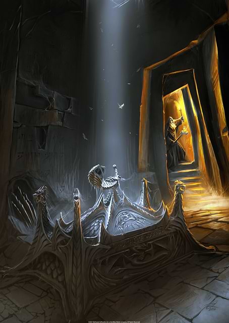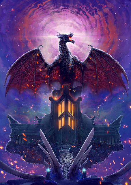 Skyrim with dragon crests, cold mountain mood and quieter fantasy exploration atmosphere.