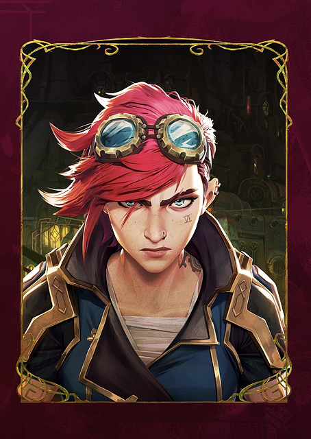 Arcane with more Zaun/Piltover tension, painterly neon and character-first screen compositions.